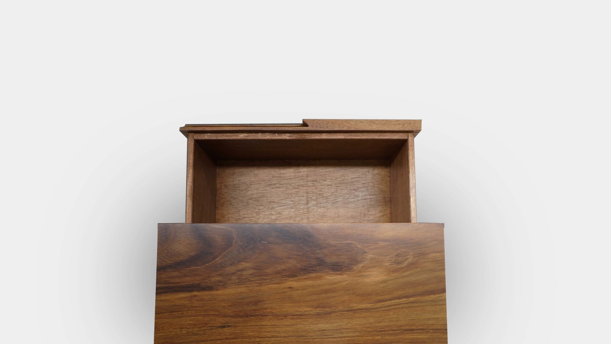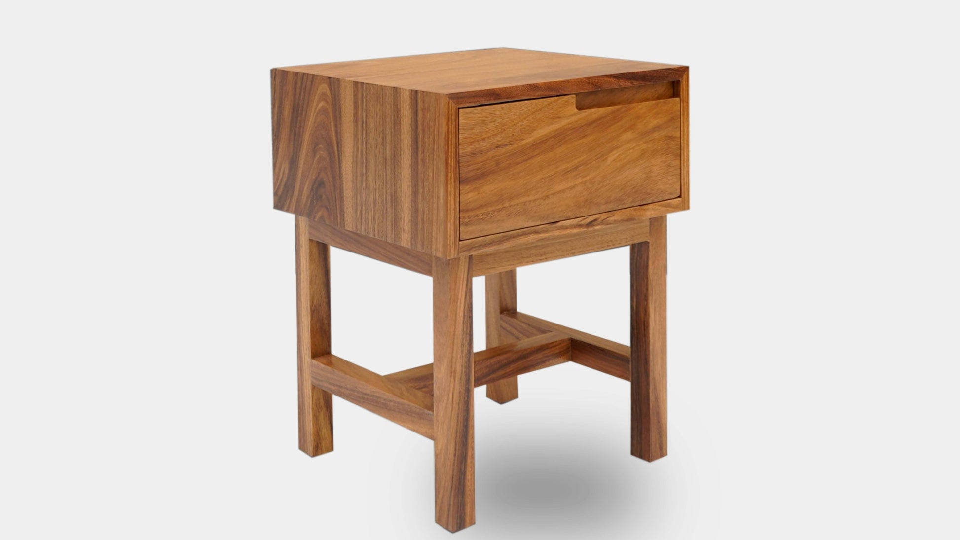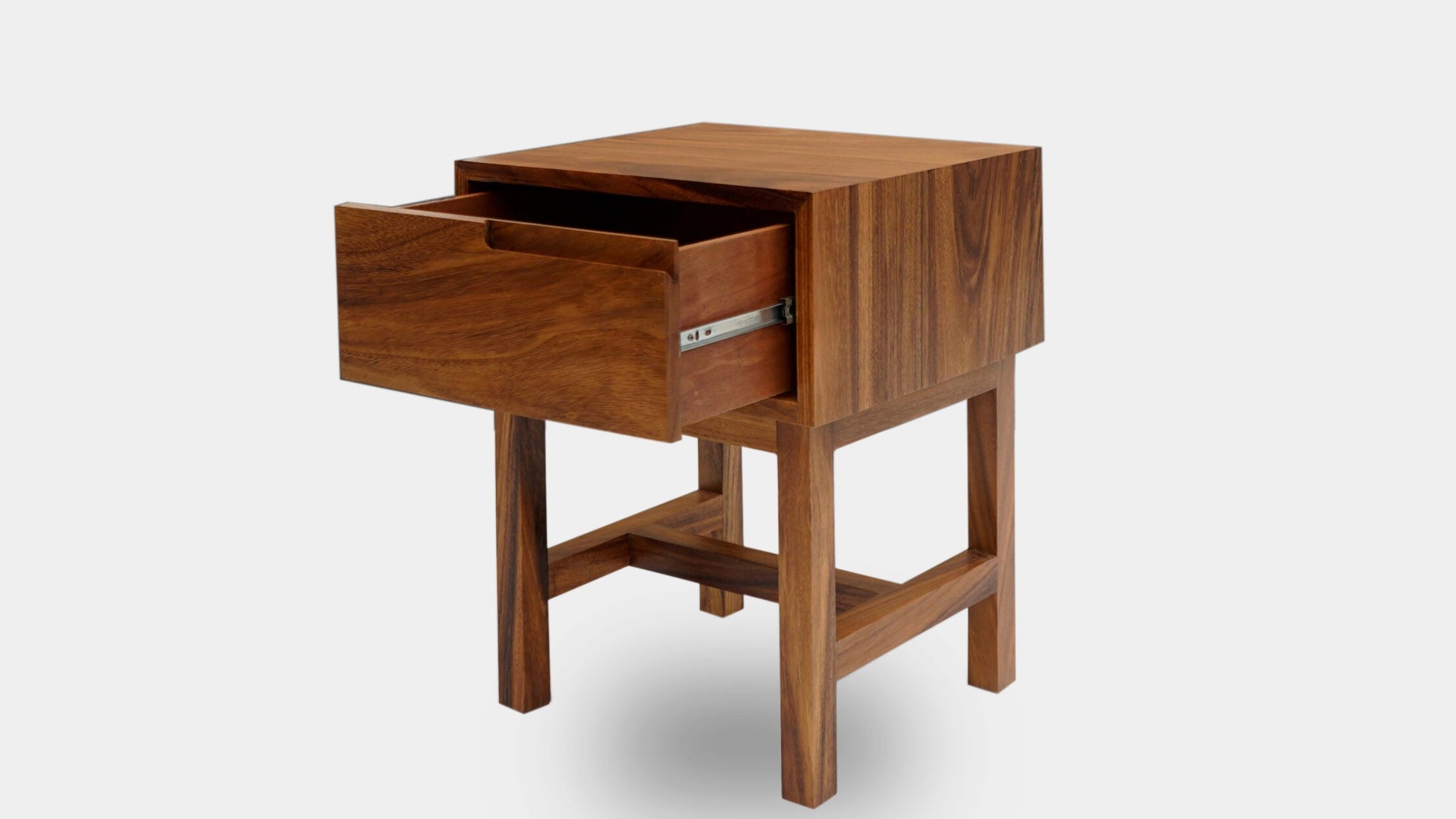Con un diseño simple en su exterior y uno práctico en su interior. Buró en madera 100% de parota con un diseño minimalista.