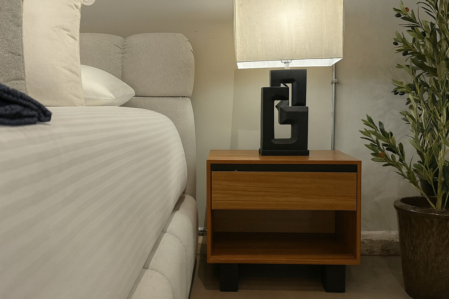 El Buró Sher destaca por su diseño contemporáneo y acabados refinados que aportan estilo y practicidad a tu recámara. Una pieza versátil que complementa a la perfección camas modernas y ambientes sofisticados.