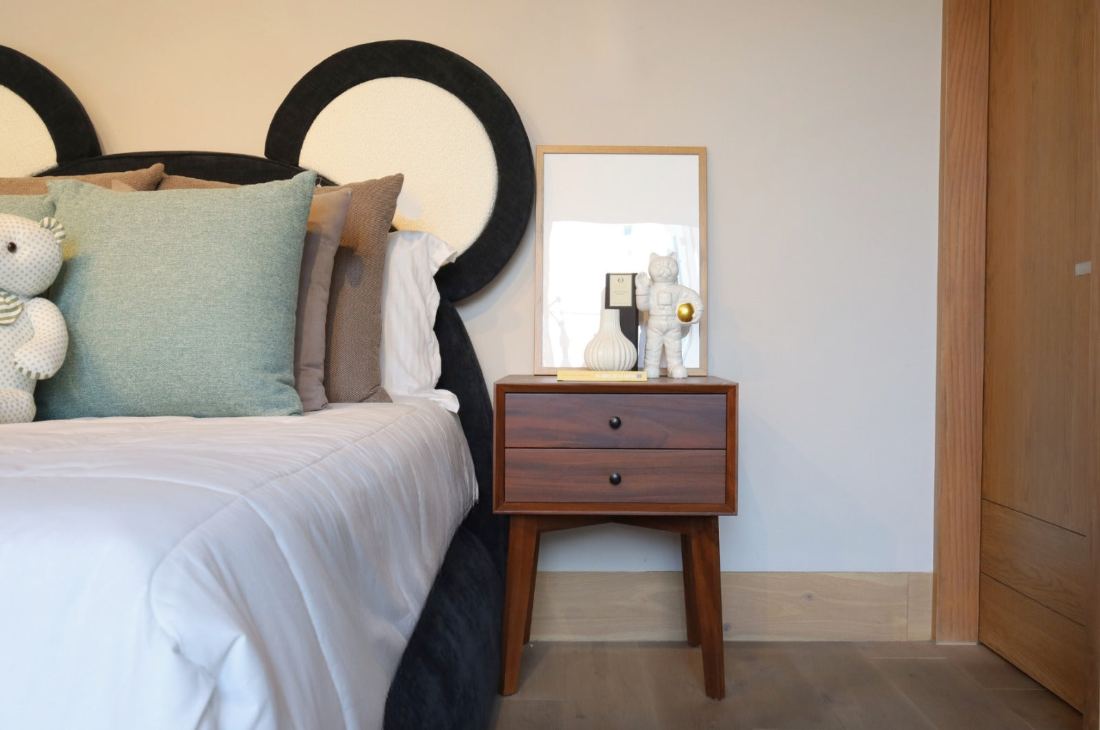 Pequeño y practico con un diseño simple y elegante ideal para espacios pequeños. Fabricado en madera 100% de parota.