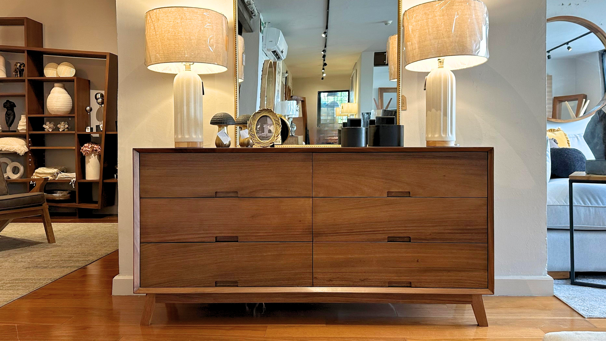 Hecha de madera 100% de parota, su color y acabado es versátil para integrarla a cualquier estilo cuenta con seis amplios cajones perfectos para almacenamiento. Los colores pueden variar.